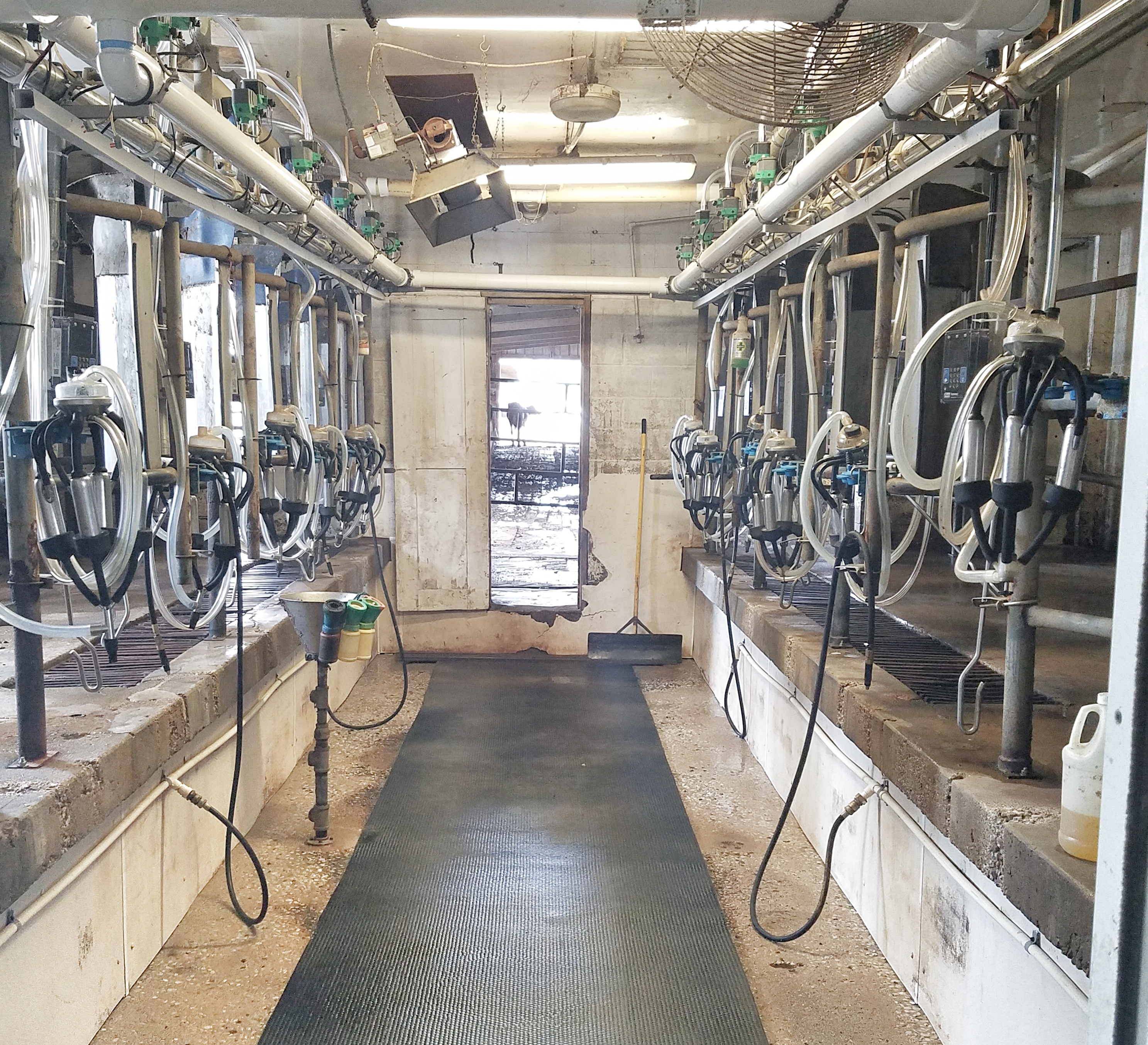 We milk the cows 2 times a day (4:00 a.m. and 4 p.m.) every day in a “double 6 parlor”. This means that there is a center alley where we stand and then an elevated space for six cows to walk in on each side (the cows udders will then be at a convenient height for milking). The parlor was constructed in 1975, remodeled in 2001 and remodeled again in 2017. In the parlor we currently utilize AIC Waikato technology and automatic take-offs. Our milk is picked up every other day and goes to the fluid milk bottling plant in Peoria, IL. We are proud members of the Prairie Farms Dairy cooperative.